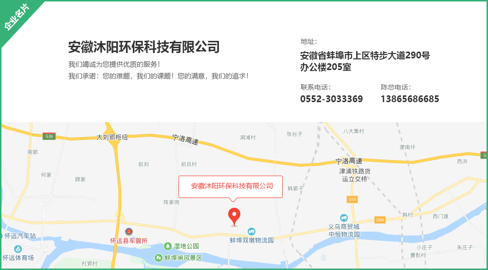 安徽沐陽環保科技有限公司是一家從事大氣污染治理產品的設計、制造、安裝、調試、服務為一體的專業化公司。公司位于皖北商貿重鎮-蚌埠市,毗鄰合肥、南京、鄭州等省會城市,京滬鐵路與合徐高速,蚌寧高速穿城而過,交通便利,地理位置優越。